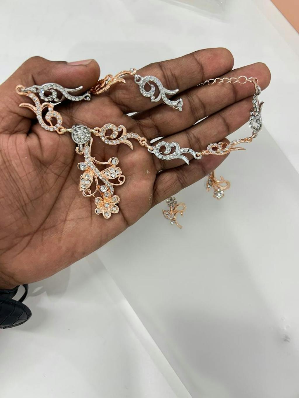 Add timeless elegance to your jewellery collection with this Elegant Gold Tone Leafy Vine Floral Drop Necklace Set. Designed with a graceful vine-inspired chain and a delicately cascading floral pendant, this piece beautifully captures nature’s charm in a refined, feminine style.